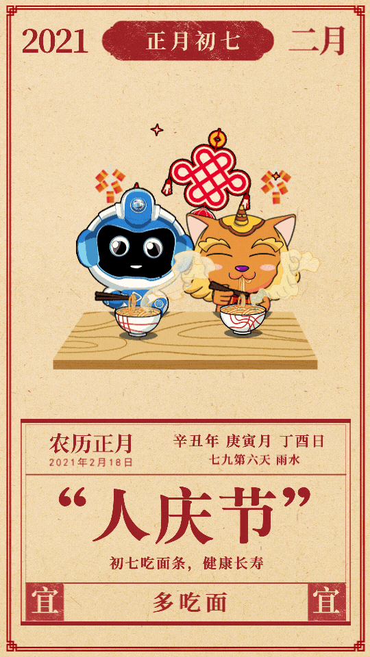 “正月初七,吃面条!”
