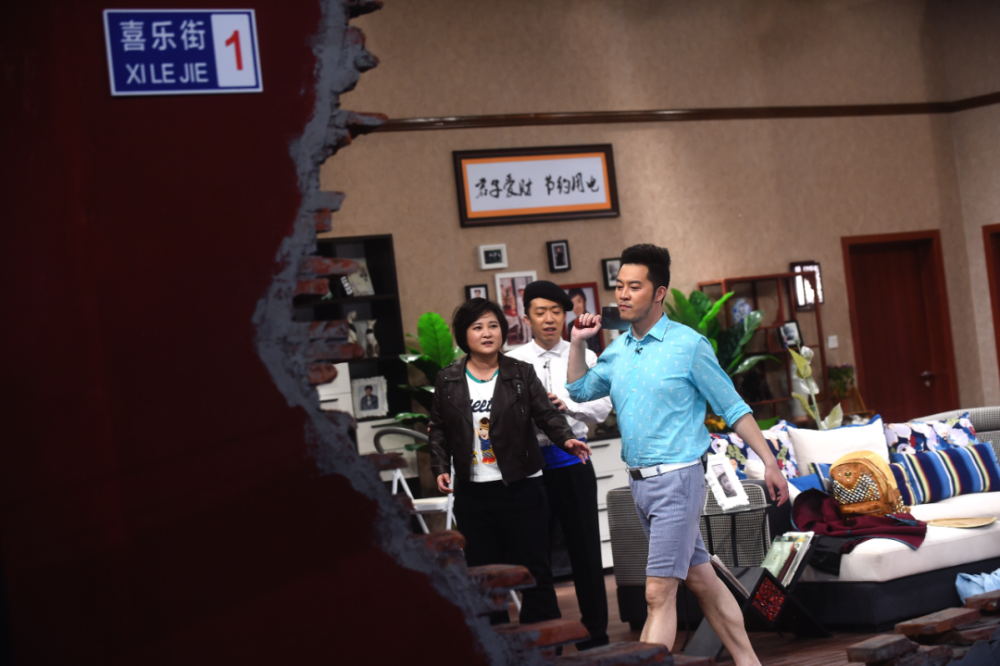 沙溢(右)、李菁(中)、贾玲在《喜乐街》中即兴表演 新华社记者金良快摄