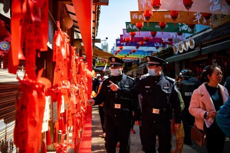 针对春节期间返乡人员增多情况,大力排查化解劳资、家庭、邻里、婚恋等矛盾纠纷,推动压实部门责任、属地责任,严防个人极端暴力案事件发生。认真落实防疫要求,暂停大型群众性活动审批,全面加强民间节庆活动现场秩序维护和景区、商场等人员密集场所巡逻防控,严防疫情传播风险,确保各大景区秩序正常,未发生拥挤踩踏等安全事故。