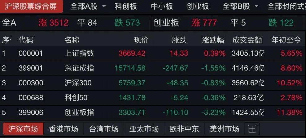 早盘三大指数大幅高开,上证指数盘初站上3700点。随后三大指数不同程度回落,截至午间收盘时,沪指涨0.39%,报3669点;深成指跌1.55%,报15714点;创业板指跌3.23%,报3303点。沪股通净流入35.2亿元,深股通净流入28.9亿元。
