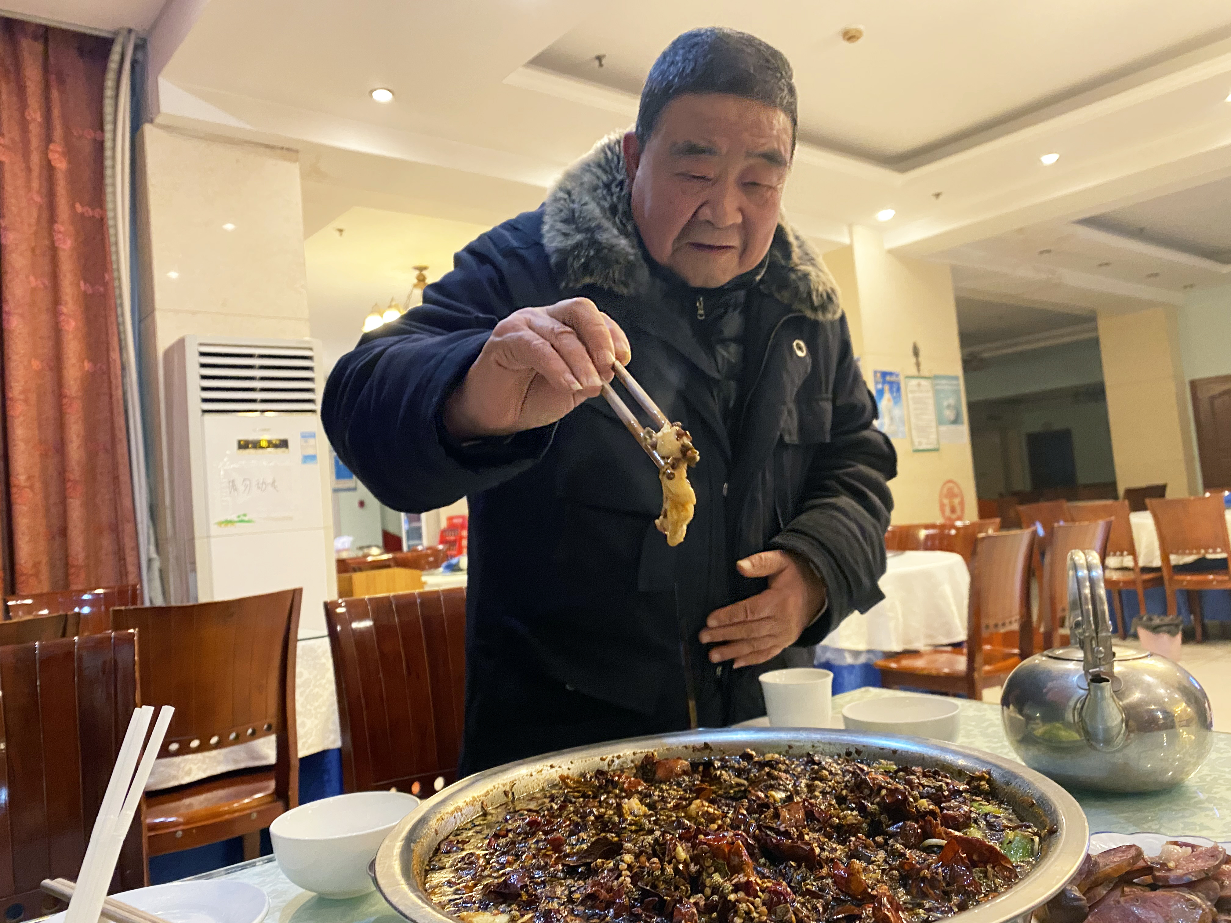 2月2日,王明庆展示刚出锅的水煮鱼。新华社记者王晓曈 摄