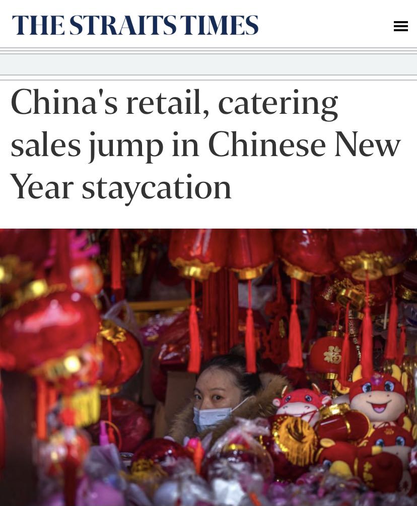 《海峡时报》——就地过年让零售和餐饮业爆单