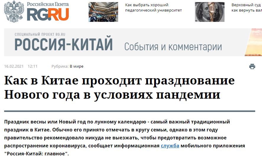 《俄罗斯报》网站近日报道称,春节是中国最重要的传统佳节。按照惯例,远在他乡辛劳一整年的人们会在节日前夕回到老家,与亲人团聚。但今年为了防控新冠病毒再次传播,许多中国人响应政府号召就地过年。