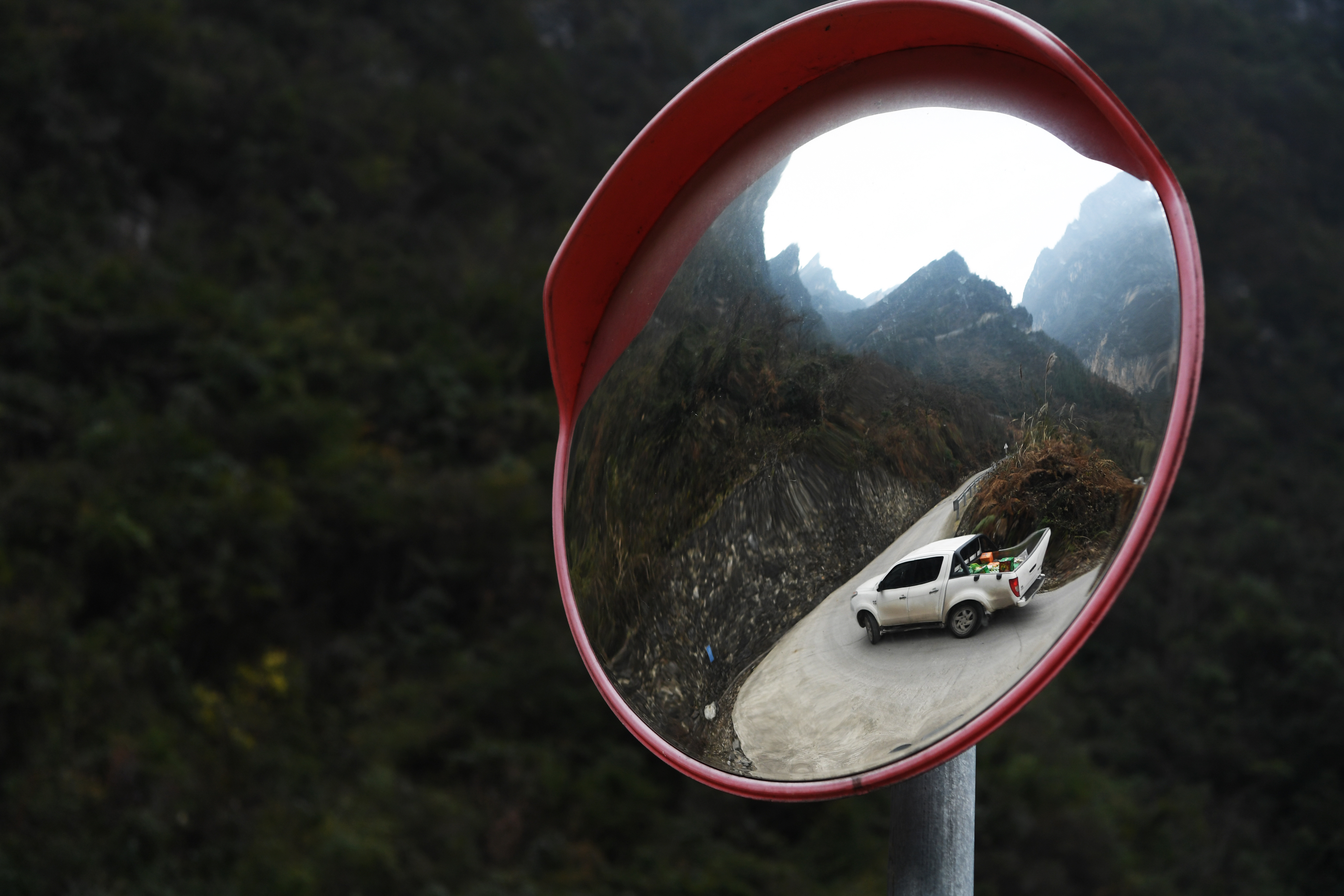 1月7日,车辆行驶在下庄村通往外界的路上。新华社记者王全超 摄