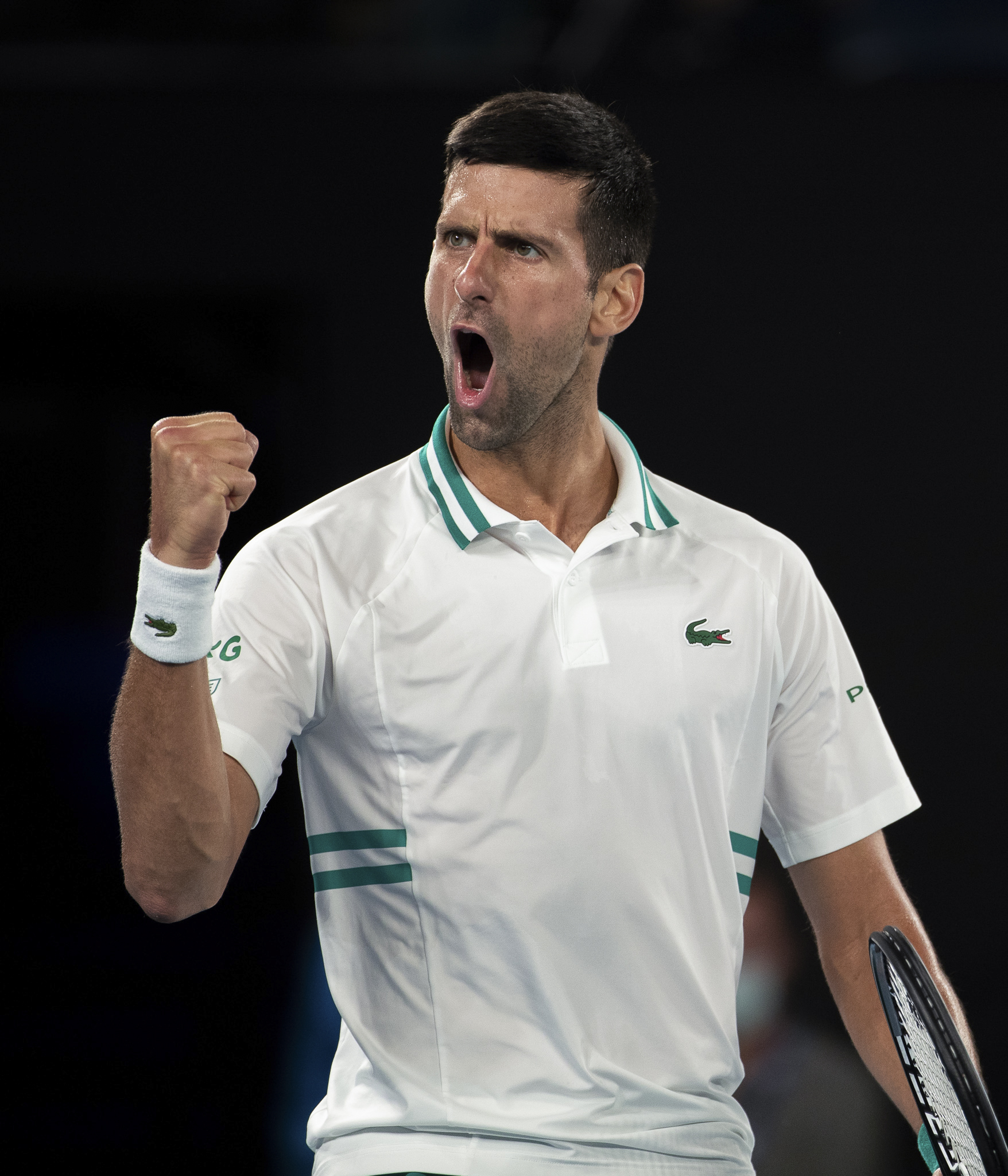 2月18日,焦科维奇在比赛中庆祝。新华社发(胡泾辰摄)