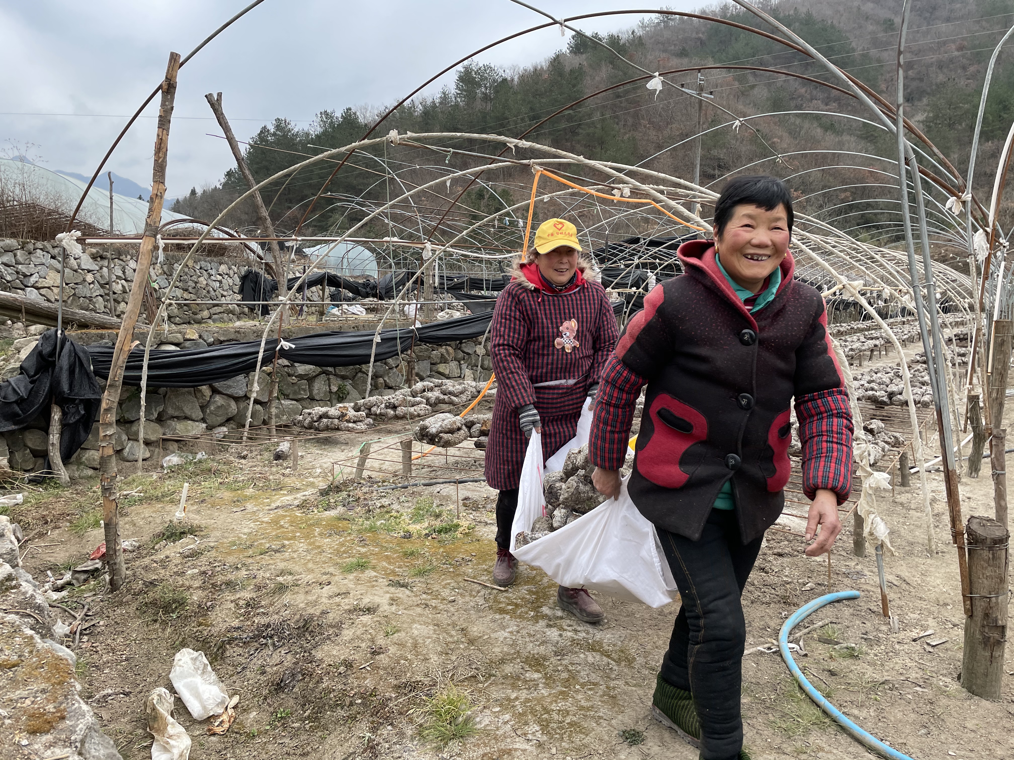 老伴知道,他又去村里指导香菇种植了。花草门村香菇基地,是村里最热闹的地方:二三十人正在拌料、装袋,耳边是机器的轰鸣和欢笑声,空气里能闻到香菇菌料发酵的味道。