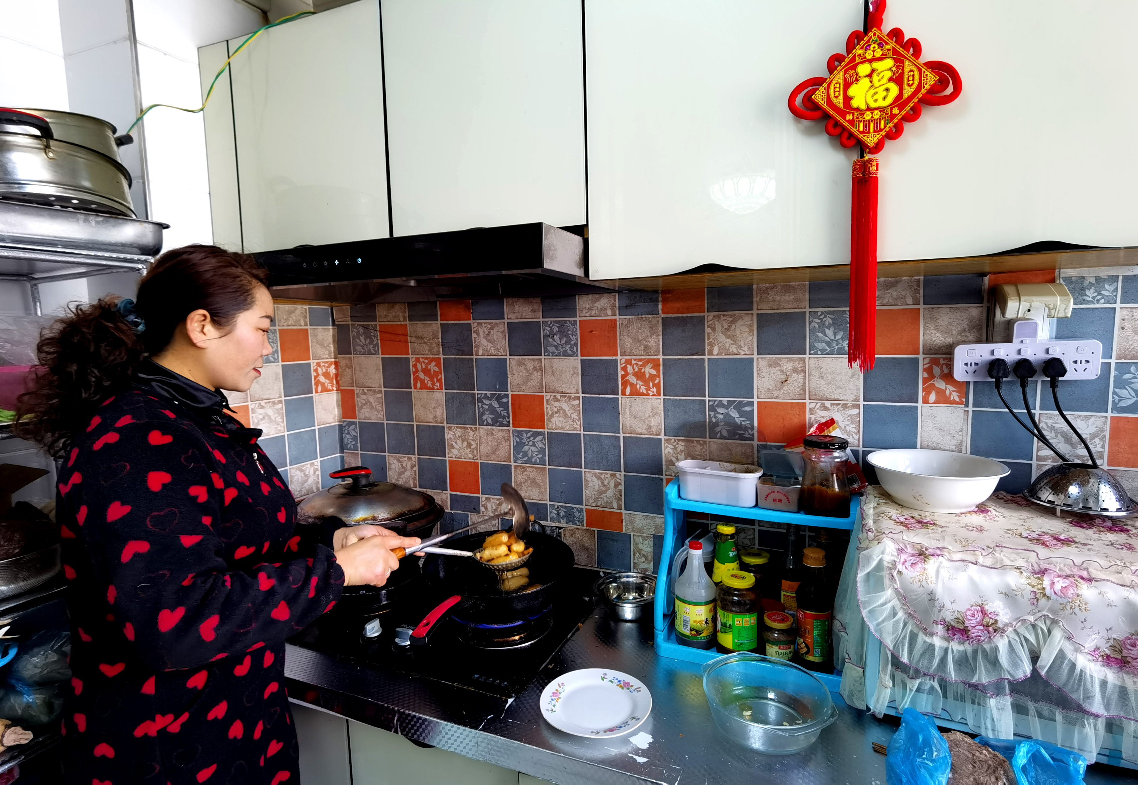除了比在老房子更暖和,新厨房的方便快捷也给杜英慧带来了不一样的体验。杜英慧一家七口人,以前过年期间亲戚来串门,杜英慧做饭就靠着一个蜂窝煤炉。