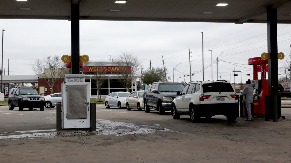 2月18日,人们驾车在美国得克萨斯州休斯敦市一个加油站排队加油。(新华社发,劳承跃摄)