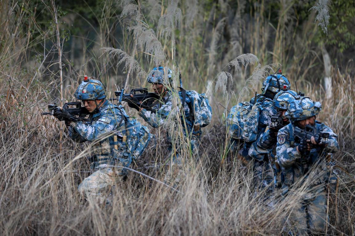 新华社广州2月19日电(贾成露)近日,海军陆战队某旅组织多个陆战班翻山岭、越沟壑、穿丛林,在野外条件下完成协同搜索、情报侦察和渗透破袭等任务。