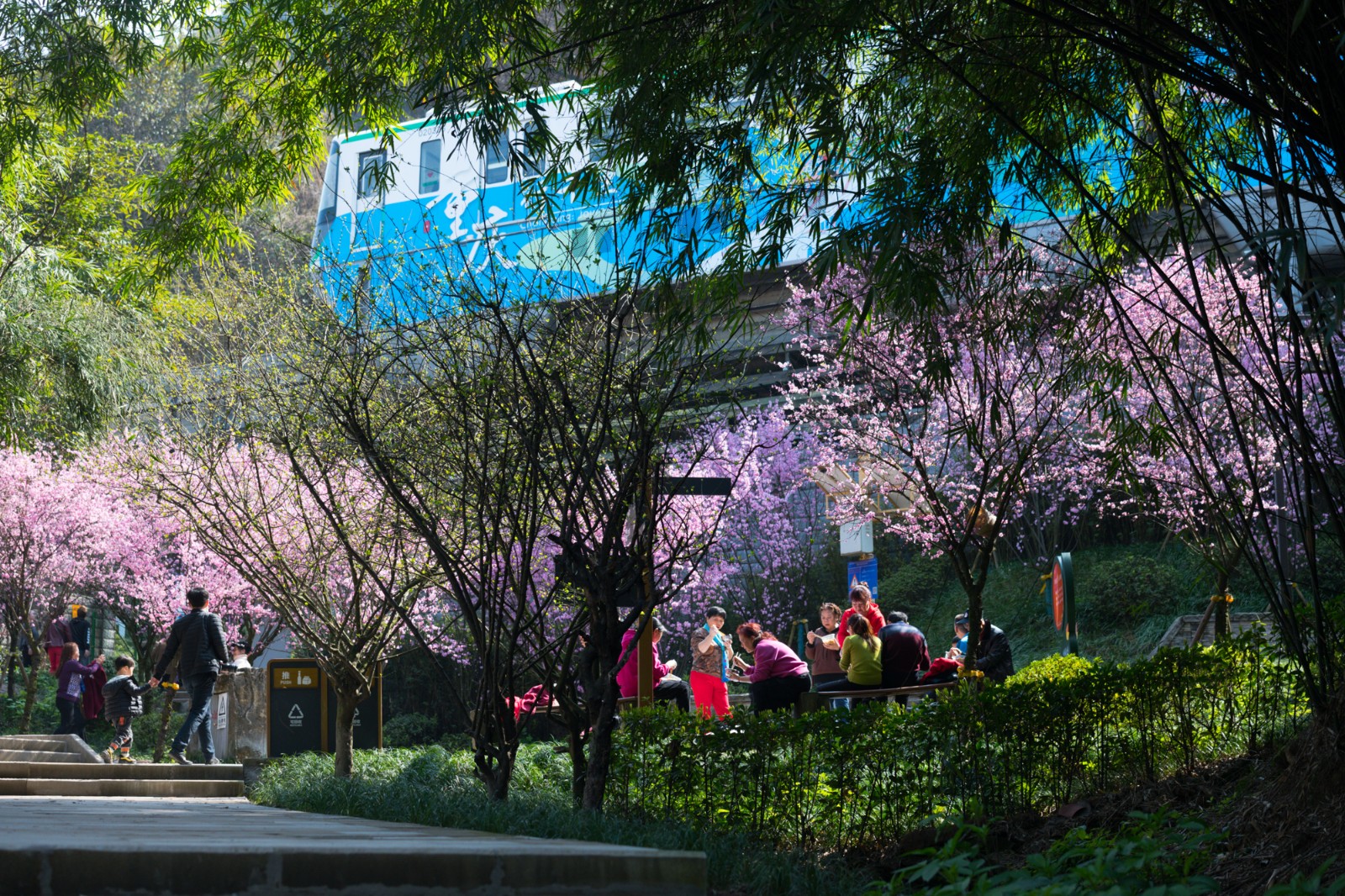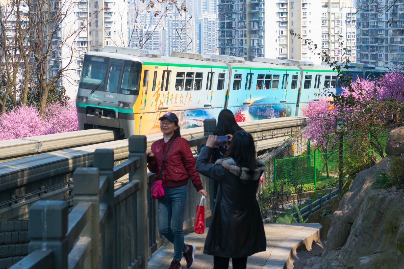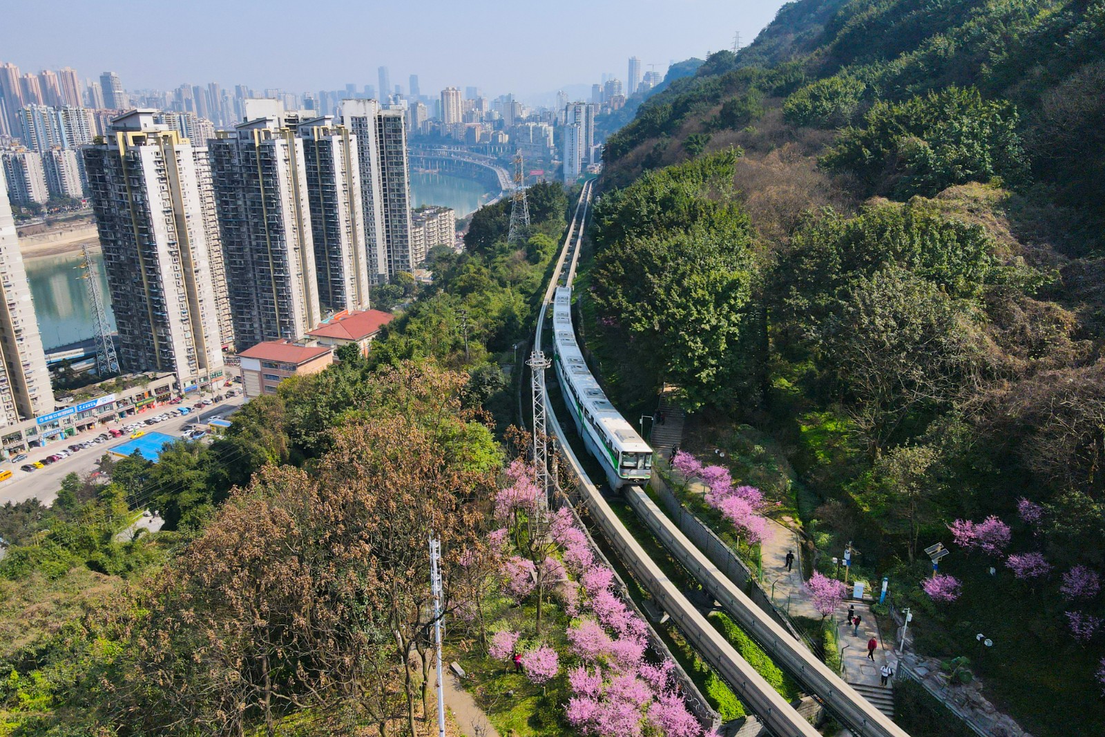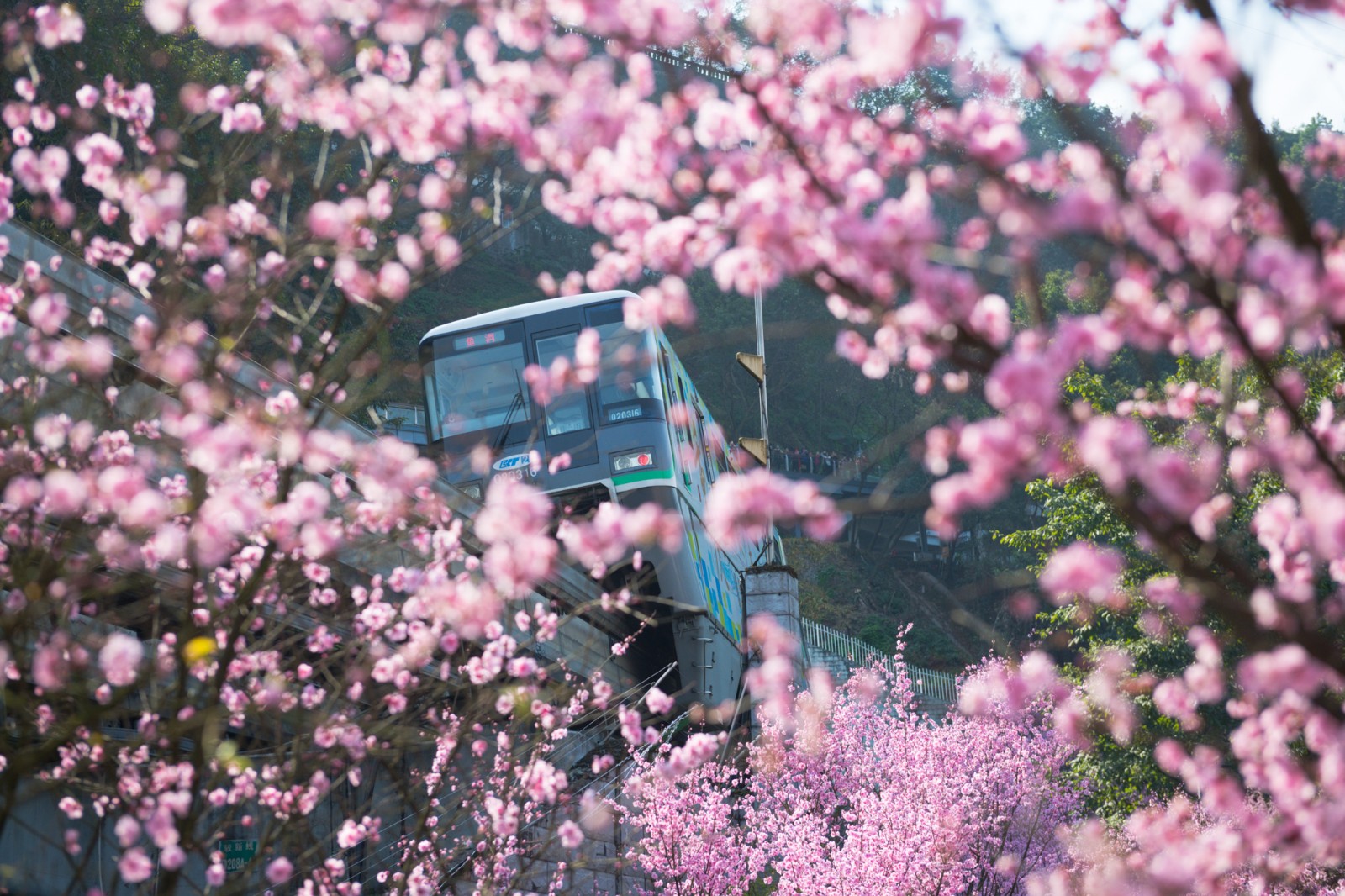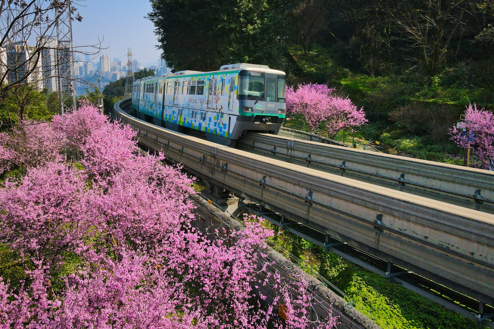 春暖花开,万物复苏。近日,重庆轨道交通2号线佛图关段,大面积的美人梅花盛开,单轨列车穿行在花海中,如开往春天的列车,成为一道城市亮丽的风景线。(文图/常碧罗 刘敏 邹乐)