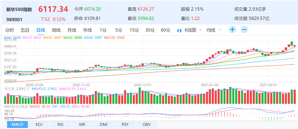 新华社北京2月19日电(记者闫鹏)本周新华500指数(989001)震荡下行。截至19日收盘,新华500指数报6117.34点,本周下跌0.45%,成分股合计成交1.22万亿元。