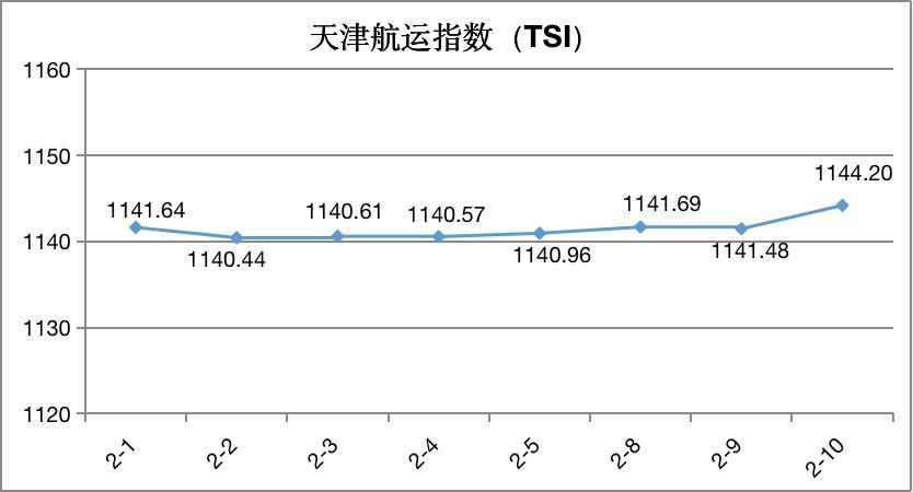新华社天津2月19日电(记者王宁)记者从天津国际贸易与航运服务中心获悉,2021年第7周(2月7日-10日),中国北方内外贸海运价格的风向标——天津航运指数(TSI)收于1144.20点,相比2月5日(第6周最后一个发布日)累计上涨0.28%。