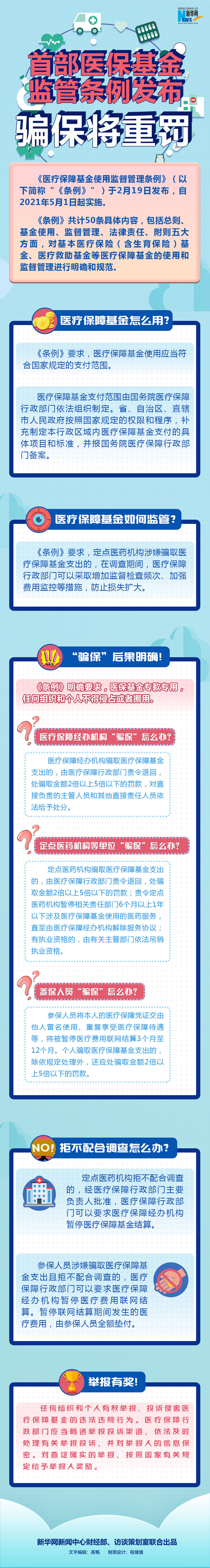 《医疗保障基金使用监督管理条例》(以下简称“《条例》”)于2月19日发布,自2021年5月1日起实施。