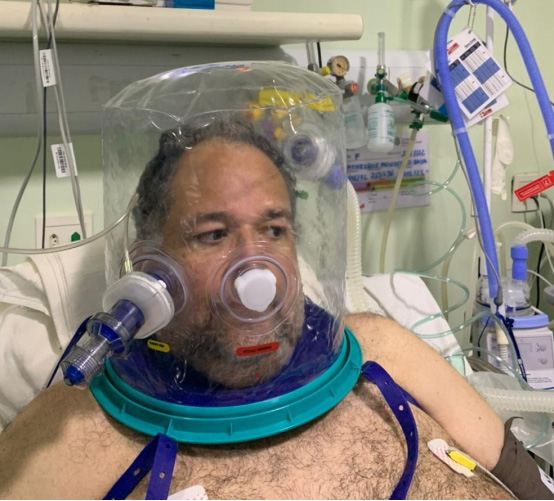 △新冠肺炎患者使用头戴式呼吸辅助机器 来源:巴西环球传媒集团
