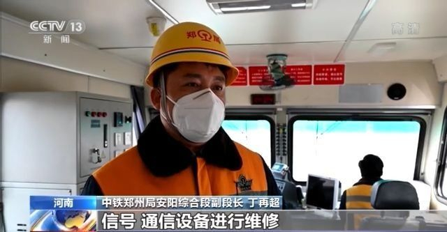 中铁郑州局安阳综合段副段长 丁再超:利用两个小时的V形天窗点,对隧道内的铁路线路、接触网、信号、通信设备进行检修,确保重载列车运输安全。