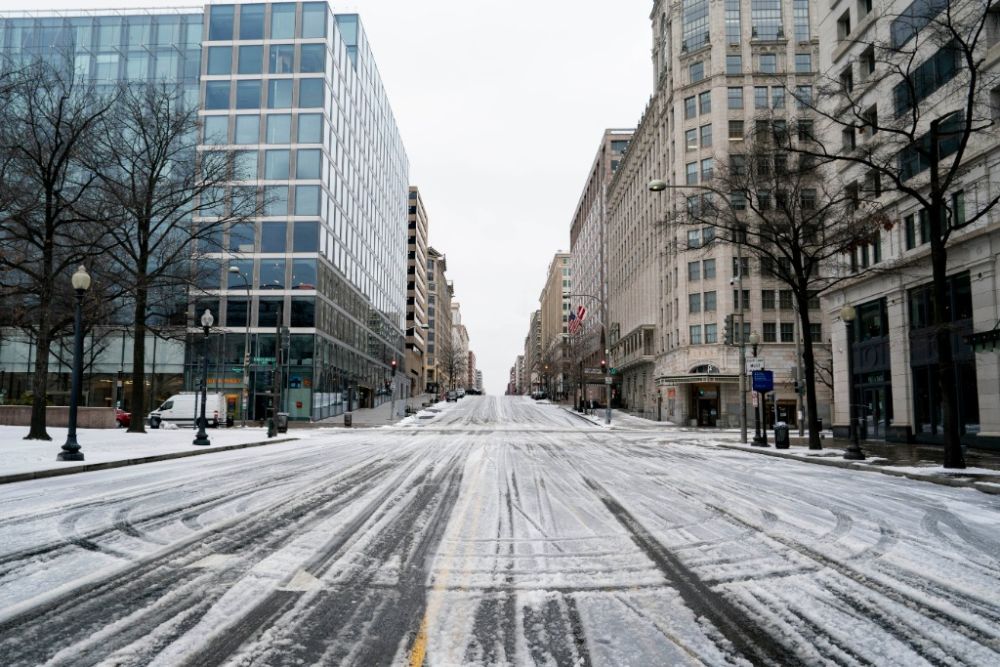 2月18日,美国首都华盛顿,道路被积雪覆盖。(新华社记者刘杰摄)