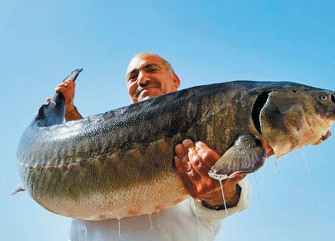 俄罗斯里海渔民捕获鲟鱼场景,其中被称为“里海珍珠”的Beluga年产量不到100尾。