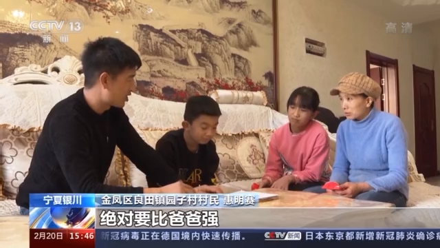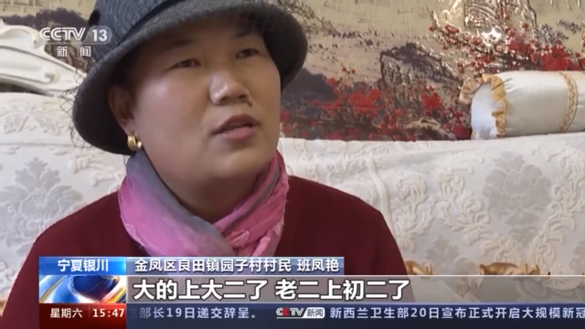 宁夏银川市金凤区良田镇园子村村民 班凤艳:大的上大二了,小的上初二了。我们两个不识字竟然供养出一个大学生,还没有上什么补习班,我就觉得是我的骄傲。