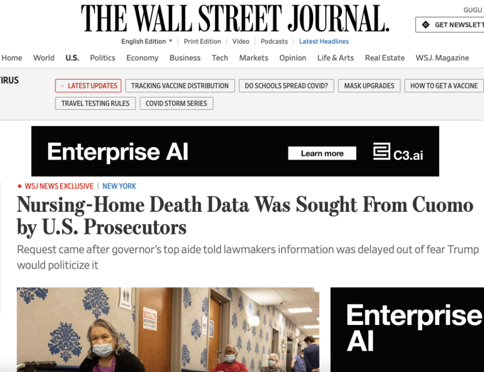 △《华尔街日报》报道,美国检察官正向纽约州政府索要养老院死亡数据