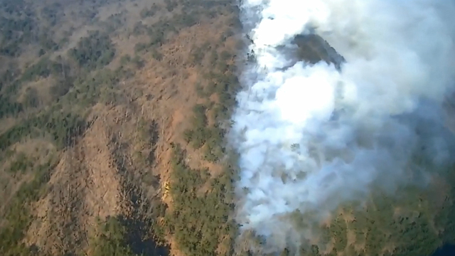 韩国江原道发生山火 山林厅派出10架直升机展开灭火行动