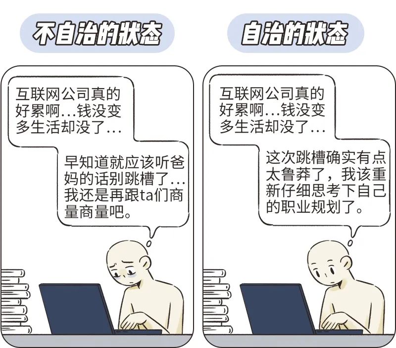 而不自治的人在遭遇不好的结果时,会认为听从内心不会让自己的生活变好;下次遇到重大决策时,ta们会倾向于听别人的。