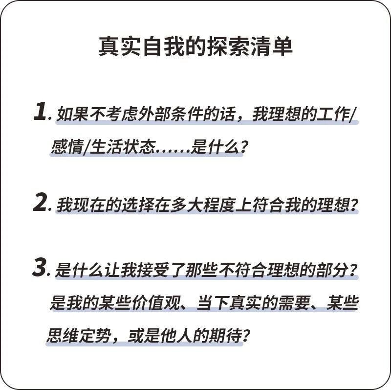 所以,主动觉察、接纳自身的变化,质疑那些“一定得如此”的惯性,能帮你走向自治。