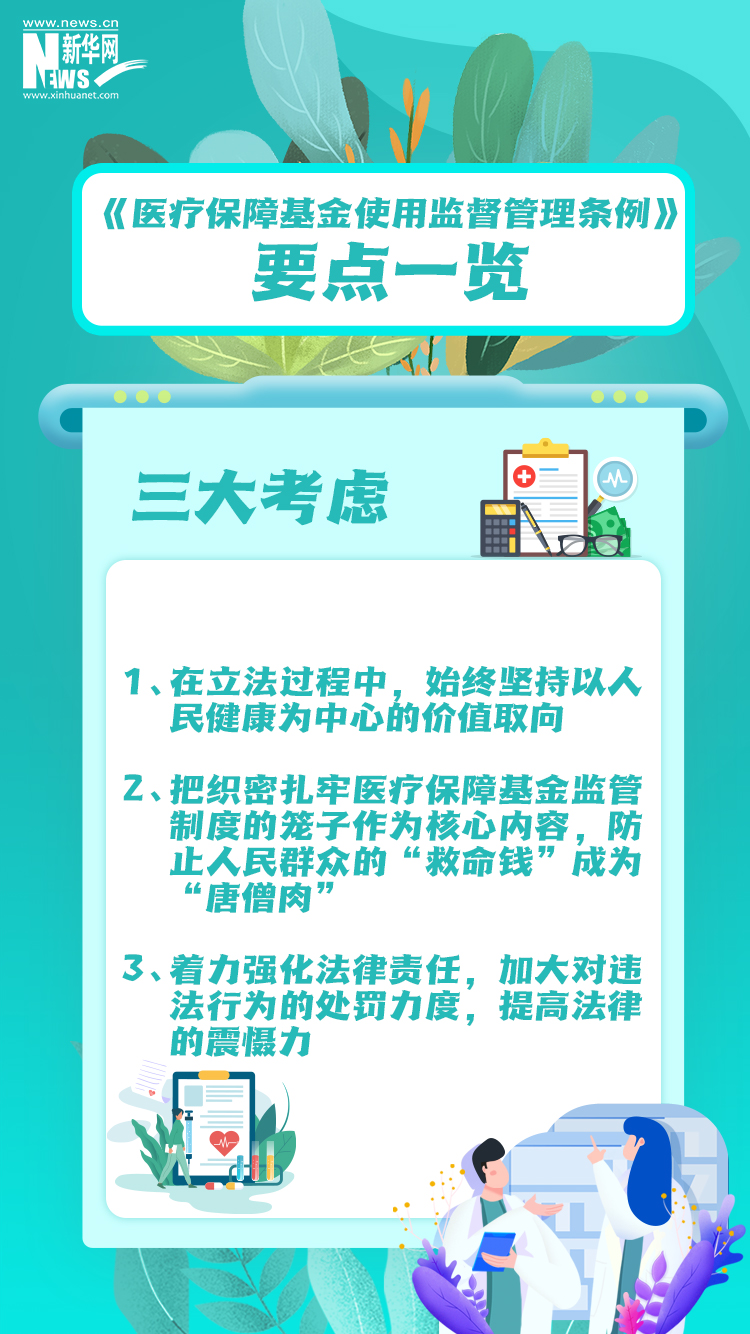 国家医保局副局长施子海表示,在《条例》制定过程中,着力提高医疗保障基金使用监督管理工作的科学化、规范化、制度化水平,努力保障医疗保障基金安全,促进基金有效使用。维护公民医疗保障的合法权益。具体来说,主要有三方面考虑(见图表)。
