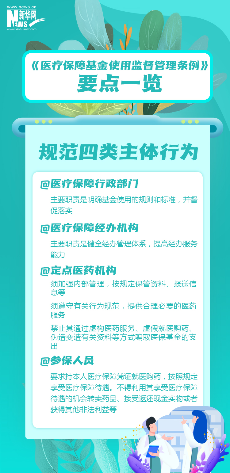 他指出,《条例》对各类主体的行为规范都作出了明确规定(见图表),相信《条例》实施以后,各相关主体严格遵守规定的行为规范,医疗保障基金使用中存在的问题会得到根本改善。