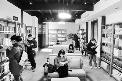 尚书阁精品图书馆坐落在江西省南昌市青云谱区一栋明清建筑内,在这儿既可以徜徉在知识的海洋里,也可以欣赏别具一格的古建筑。该馆藏书3万余册,涵盖历史、政经、文学等,是南昌极具诗意的公共文化客厅。图为2月18日,在尚书阁精品图书馆内,众多市民及读者在这里读书“充电”、享受书香浸润的好时光。张李通摄/光明图片