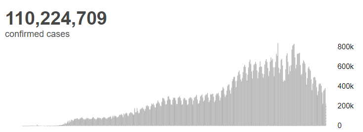世卫组织:全球新冠肺炎确诊病例超1亿1022万例