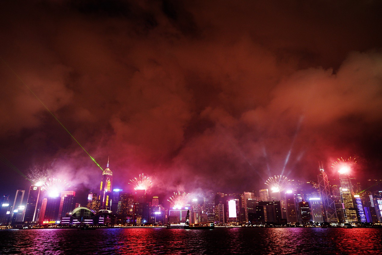 2020年10月1日,香港推出大型灯光音乐汇演“幻彩咏香江”烟花加强版,庆祝中华人民共和国成立71周年。新华社记者 王申 摄