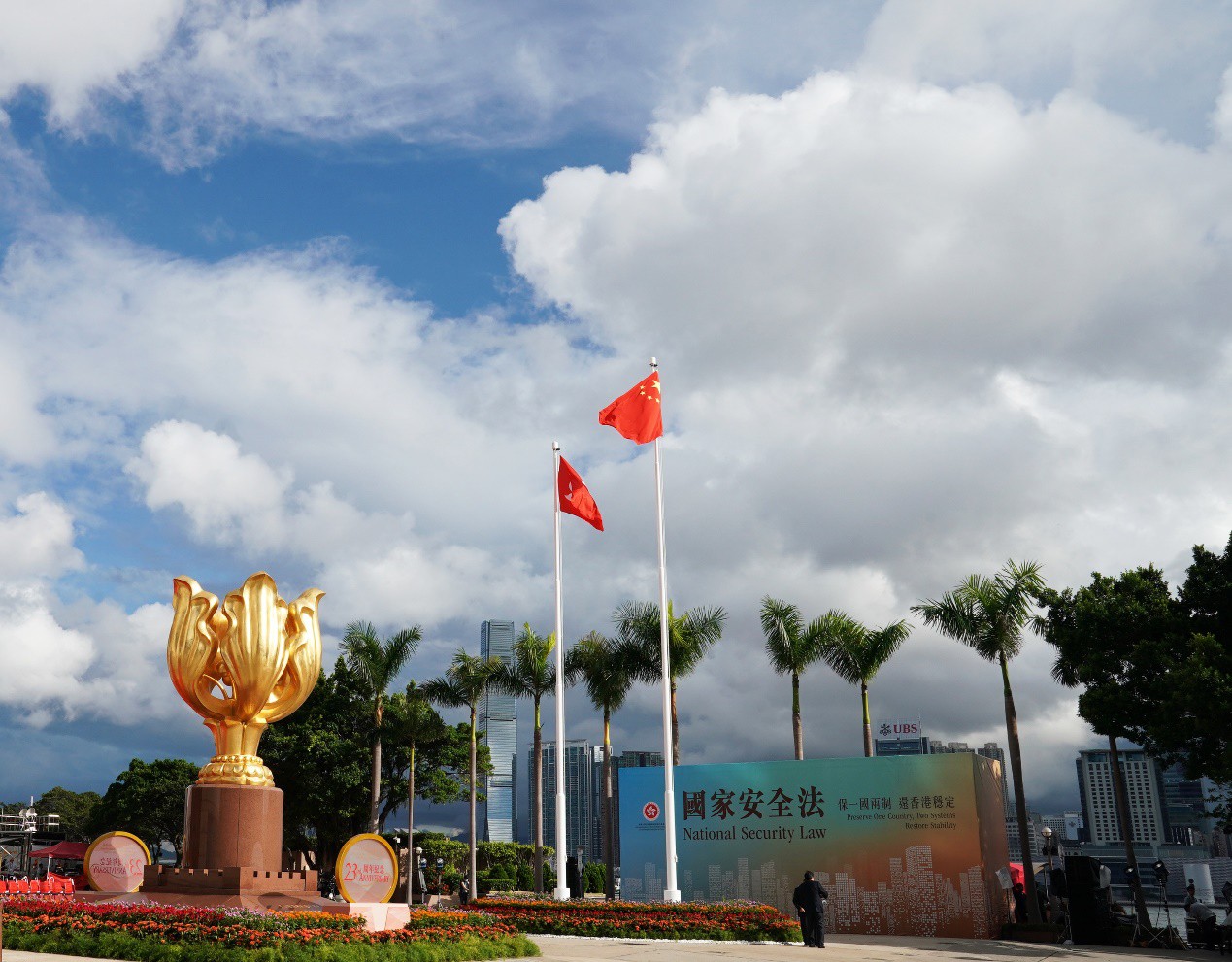 2020年7月1日,香港特区政府在金紫荆广场举行升旗仪式。这是仪式结束后的金紫荆广场。新华社记者 李钢 摄