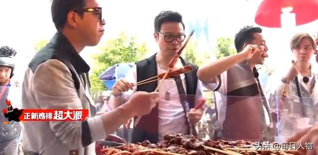 ▲ 《极限挑战》中,黄渤、黄磊等人在正新鸡排店面前吃炸鸡和烤串。图 / 《极限挑战》截图