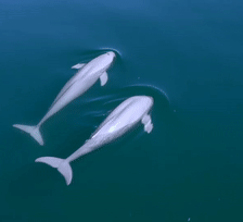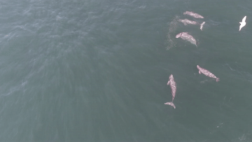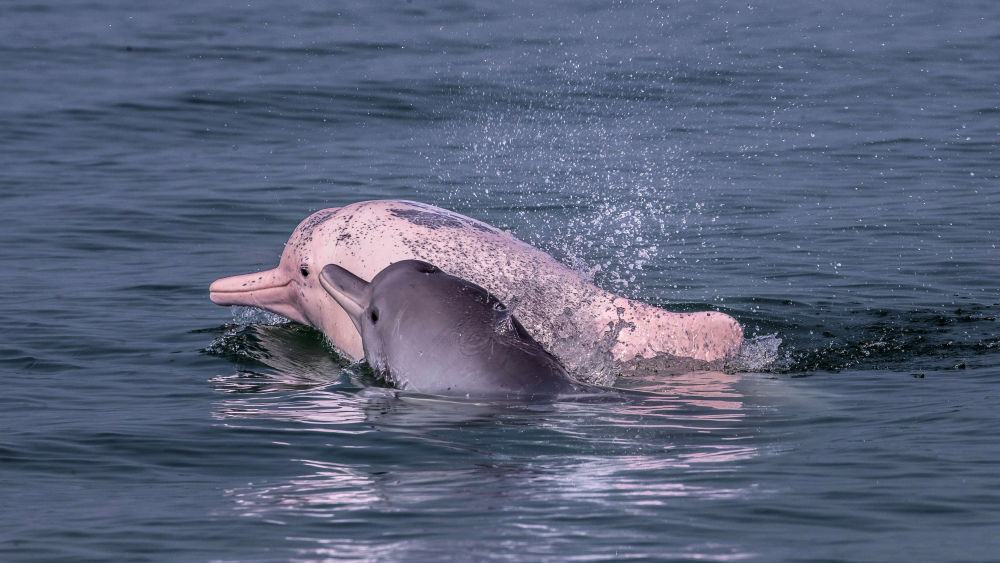粉白色的皮肤是它们最显著的特征,成年的中华白海豚粉粉嫩嫩,自带美颜滤镜,而幼年的中华白海豚则是深灰色。
