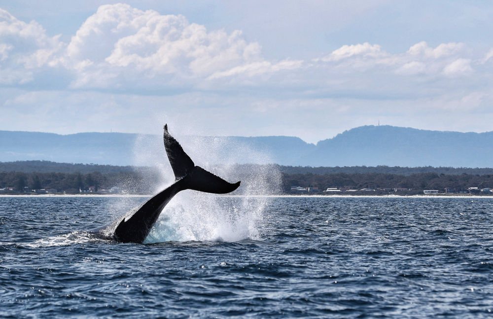 ⬆️在澳大利亚新南威尔士州海域,一头座头鲸用尾部击水。新华社记者 白雪飞 摄