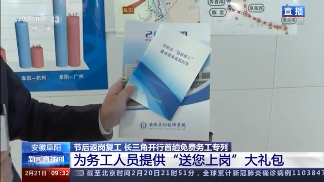 在2019年底这里开通了高铁,过去阜阳外出的务工人员,如果乘坐普速列车出行,如果说到合肥过去是要2小时23分,但是现在只要56分钟就可以到达。而到上海,这也是过去大家务工最为集中的城市之一,过去从阜阳到上海需要9小时33分,但是现在只要3个小时。像阜阳到广州,过去是需要14个小时12分钟,但现在只要8小时17分钟,也就是说在目前从阜阳前往广州都能够实现当天来回。(总台央视记者 江凯)