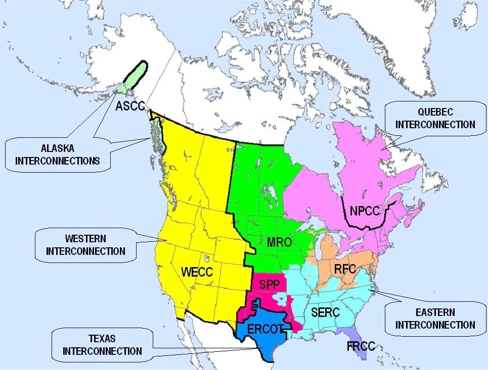 除了这三个外,北美还有阿拉斯加电网和魁北克电网