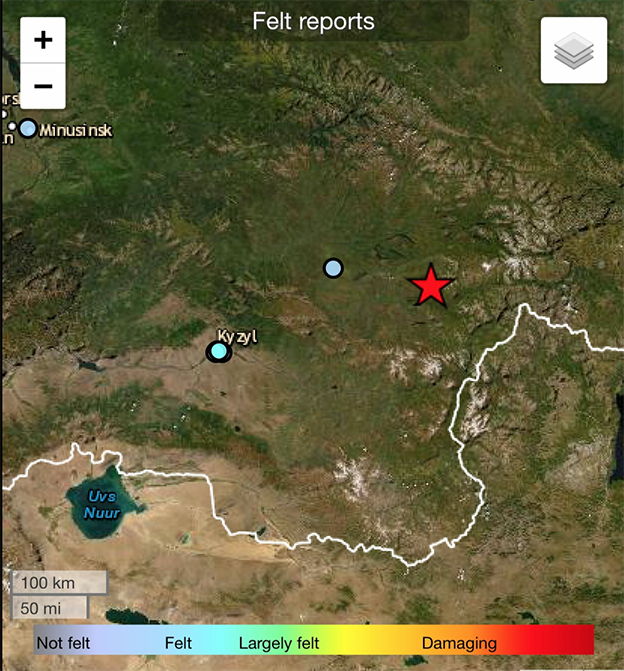 此次地震震中位于离图瓦共和国克孜勒市东北方向224公里处,震源深度为30公里。目前暂无人员伤亡和财产损失的报告。(总台记者 达日玛巴斯尔)