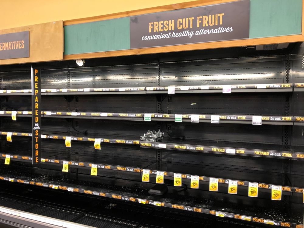 2月19日,美国得克萨斯州达拉斯市北郊的一家超市,水果货架上无货。(新华社发,田丹摄)