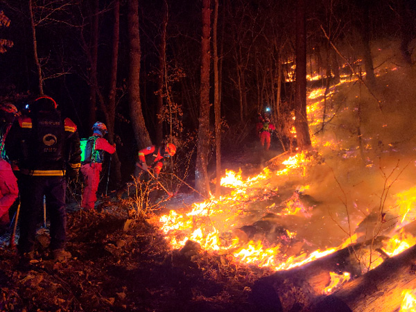山林厅与消防部门、地方自治团体及军队一起,投入了包括3架超大型直升机、5架大型直升机在内的14架直升机,33台消防车和400多名人力共同参与灭火工作,在当地时间21日上午控制住了火势。