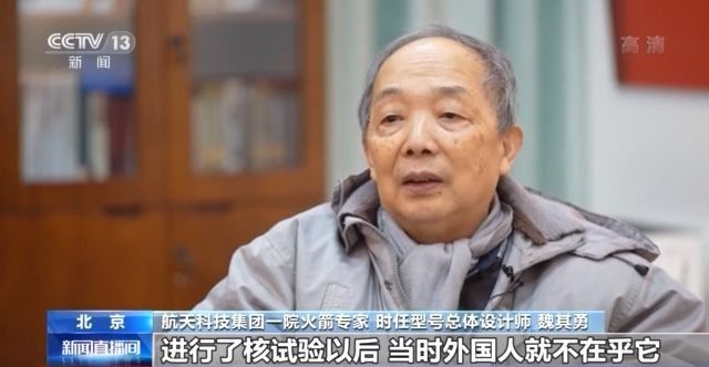 航天科技集团一院火箭专家、时任型号总体设计师 魏其勇:中国不是在1964年10月份进行了核试验吗,进行了核试验以后,当时外国人就不在乎它,中国人有弹没枪,就说中国有弹没枪。