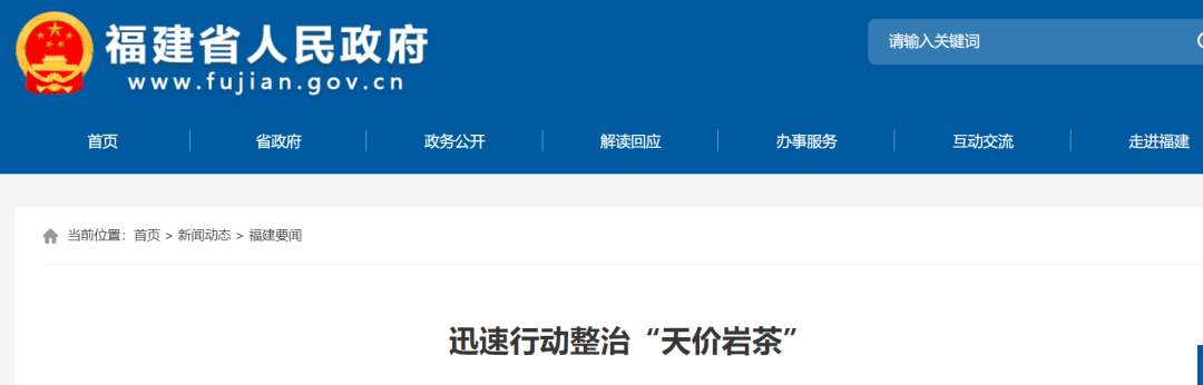 2月21日,据福建省人民办公厅消息,省市场监管局、农业农村厅迅速行动,联合发出整治通知,要求集中时间、集中力量,强化岩茶销售环节监管,对销售价格虚高的岩茶生产经营主体,特别是媒体曝光的茶商、茶企,重点查核超指导价销售搭售、私下交易或上市销售价格高昂的“非卖品”“品鉴品”等,组织查处虚假标识、掺杂掺假、假冒伪劣、以次充好、虚假宣传、虚假广告、商标侵权、不明码标价、串通操控价格等违法违规行为,并严肃整治在营销中渲染享乐奢靡的不良行为。