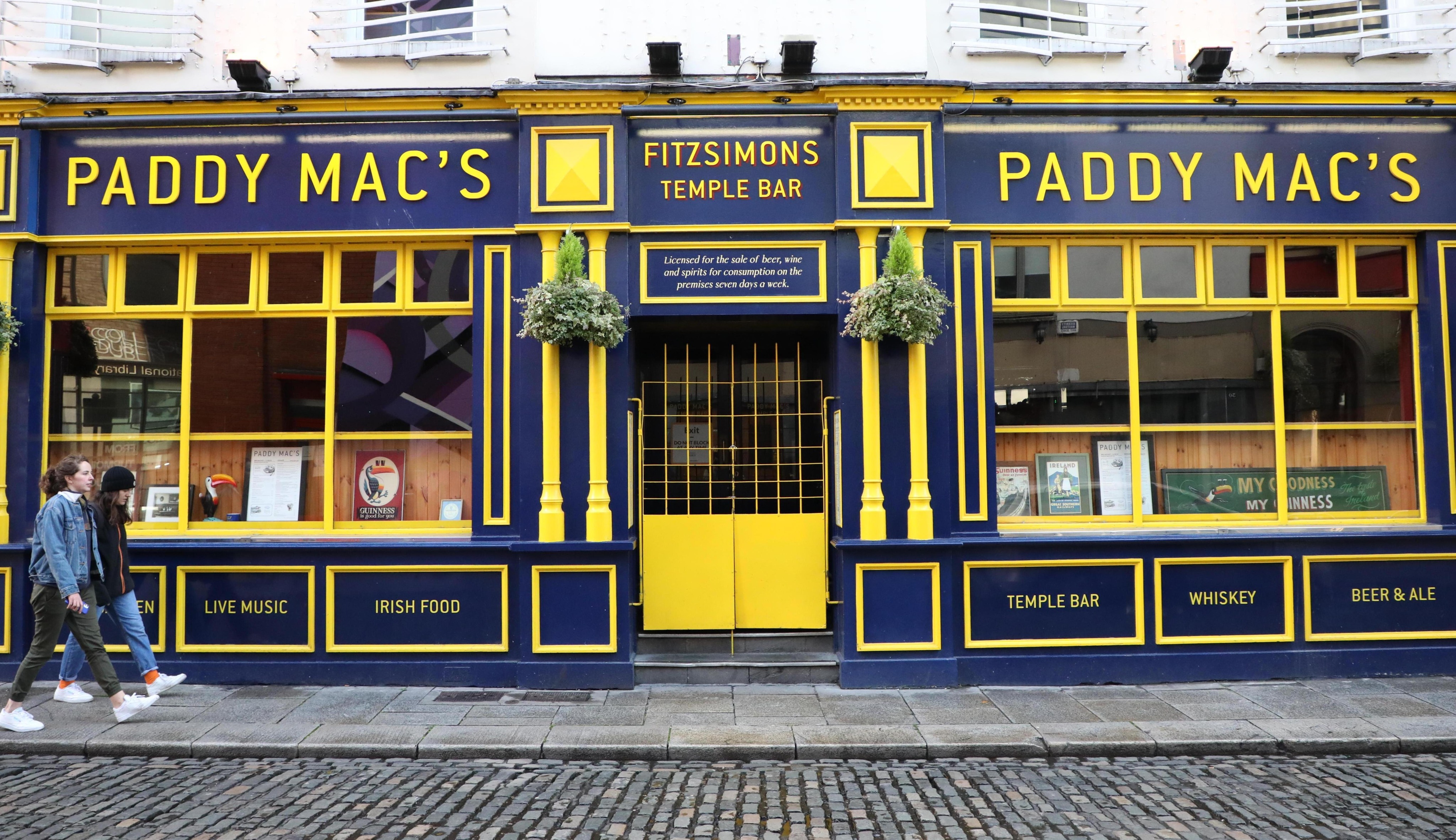 2020年11月21日,行人经过爱尔兰都柏林街头关闭的酒吧。(新华社发)