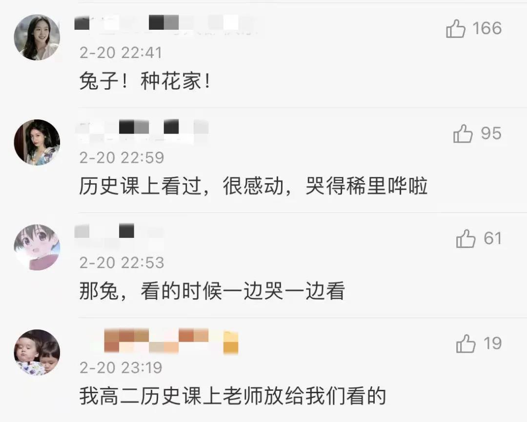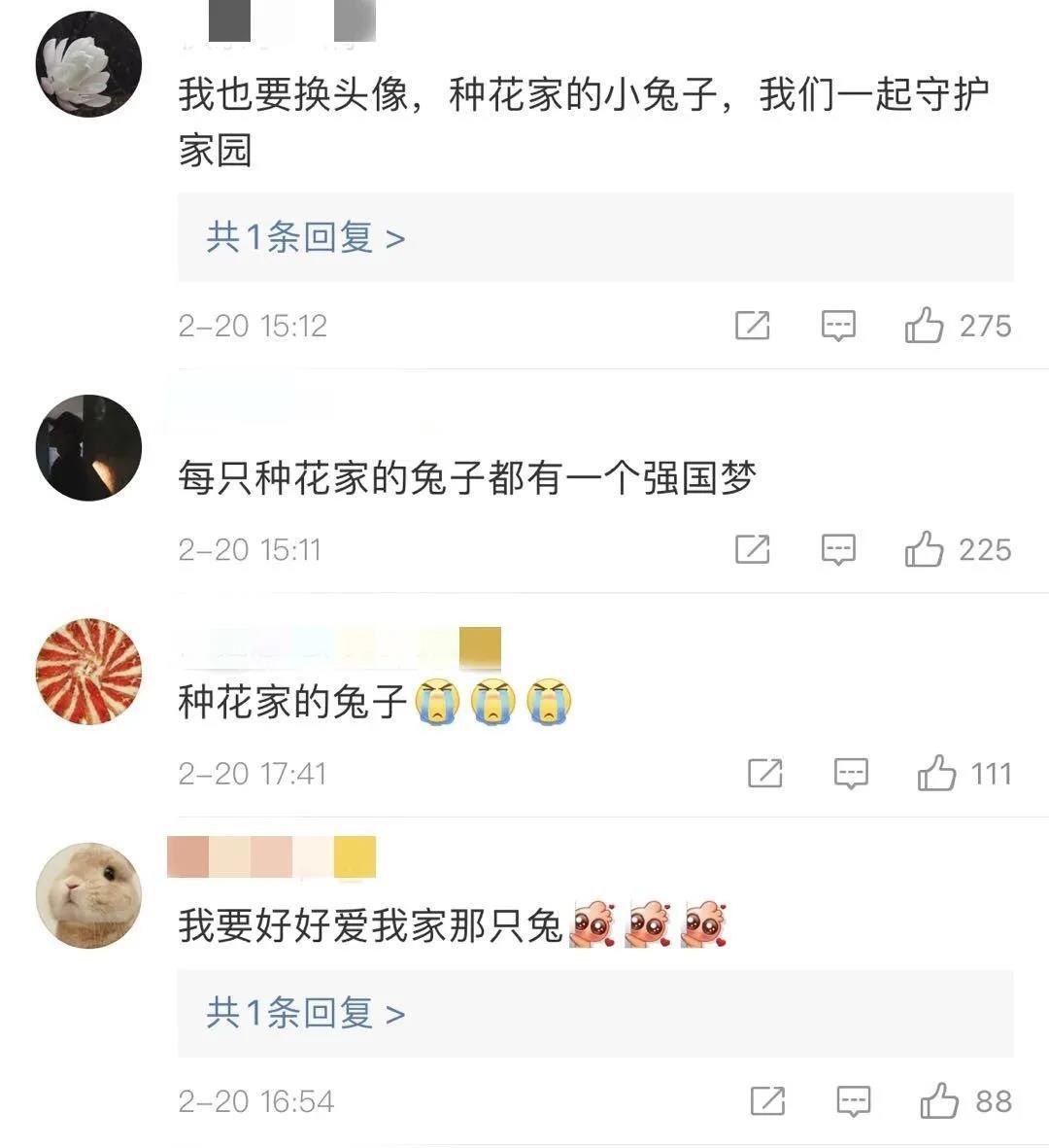 许多网友看后表示“很感动,哭得稀里哗啦的”“那兔,看的时候一边哭一边看”“种花家的兔子”“这头像,都懂的……”