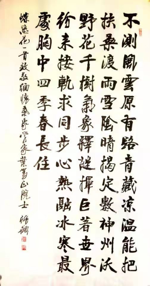 ◎不测风云原有路,青藏凉温,能把扶桑渡。雨雪阴晴揭定数,神州沃野花千树。气象释谜挥巨著,世界纷来,接轨求同步。心热融冰寒最处,胸中四季春长住。(《蝶恋花》—张飙)