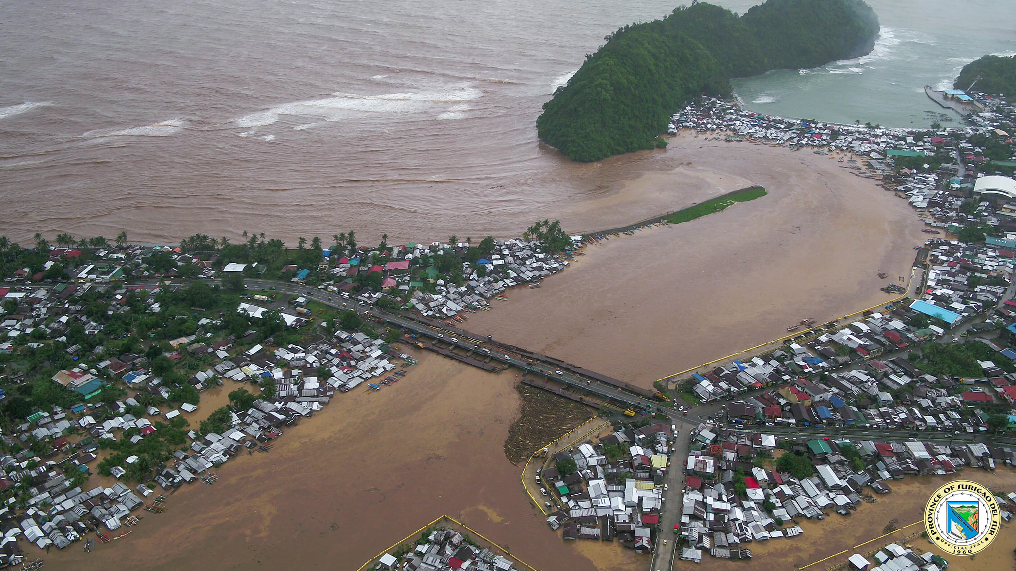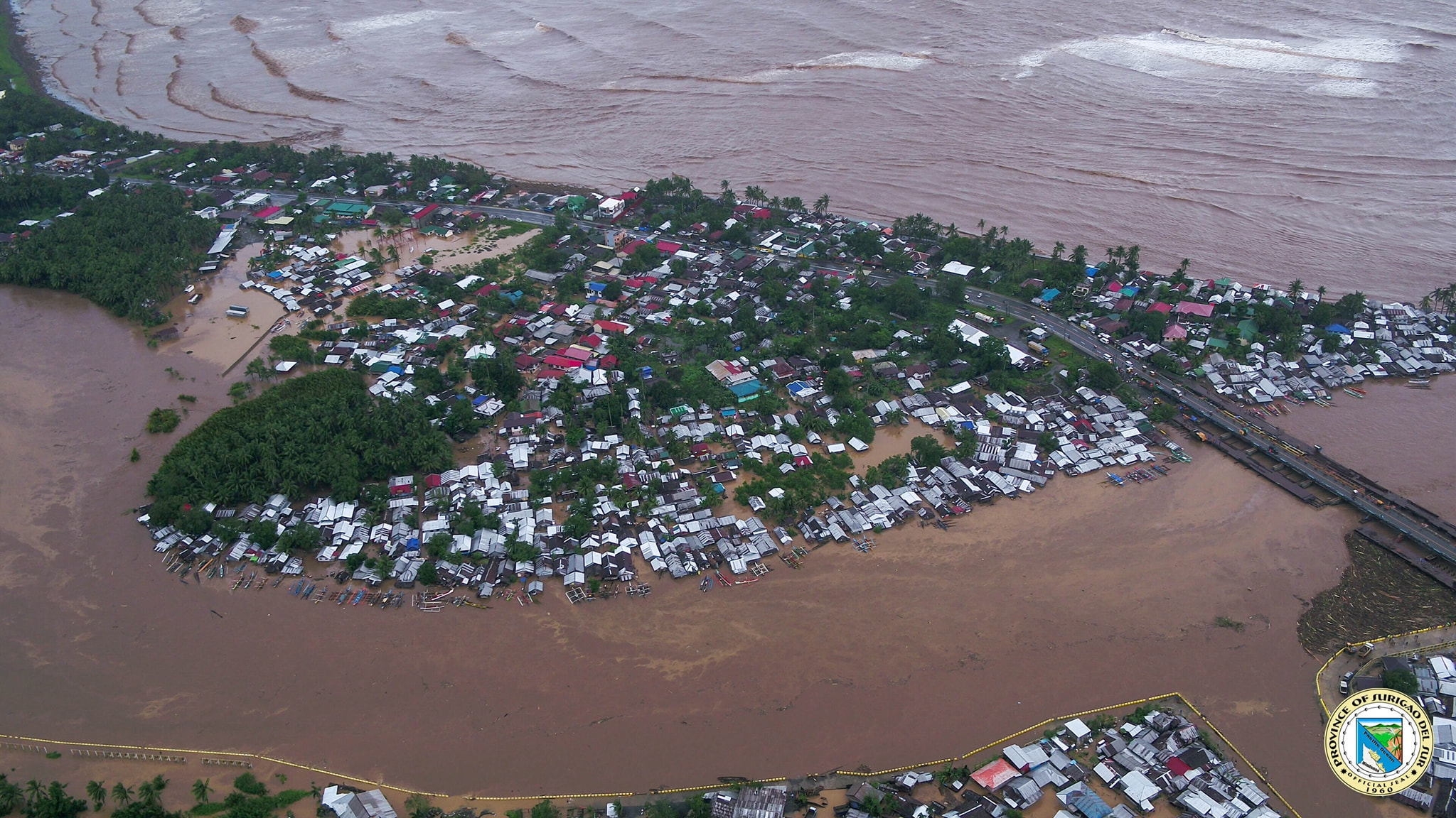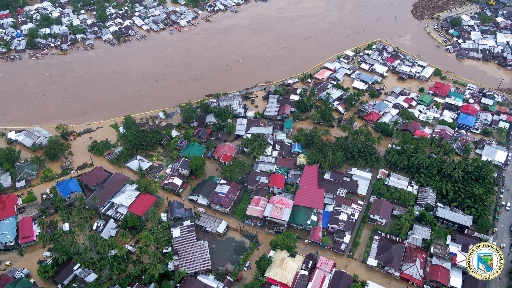 受“杜鹃”影响,菲律宾南苏里高省坦达戈市(Tandag city, Surigao del Sur)发生洪灾,当地政府提供的航拍图片显示,该市的主要街道均被洪水淹没。