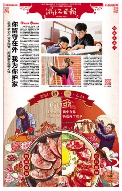 《浙江日报》2021年春节期间刊发的“留浙过年”系列新年画。