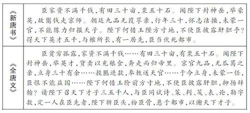 第三,或因《旧唐书》本传所谓“文集多遗失”,员半千在“咸亨中,上书自陈”的原文并没有完整保存下来。《陈情表》当是后世文人根据传闻逸事,夸张、润饰、拼凑而成。毕竟员半千在当时是一个传奇人物,他在咸亨年间上书干谒之事或曾一时传为佳话,唐代文人对士林间传奇逸闻的渲染传播并不鲜见。《新唐书》本传记载员半千上书自陈的内容,虽是今天所能见到的最早有关《陈情表》的记录,但已非《陈情表》原貌。《全唐文》收录的《陈情表》比之《新唐书》的内容,又增加了几许夸张和润饰,就更加荒诞无稽了。