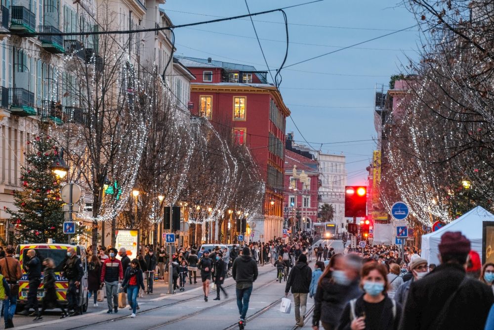 2020年12月22日,人们走在法国南部城市尼斯的一条商业街上。(新华社发,塞尔日·阿乌齐摄)
