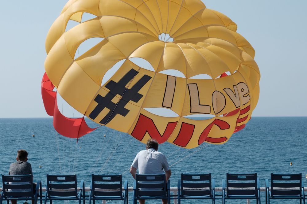 2020年7月22日,人们在法国南部度假胜地尼斯的海边休闲。(新华社发,塞尔日·阿乌齐摄)
